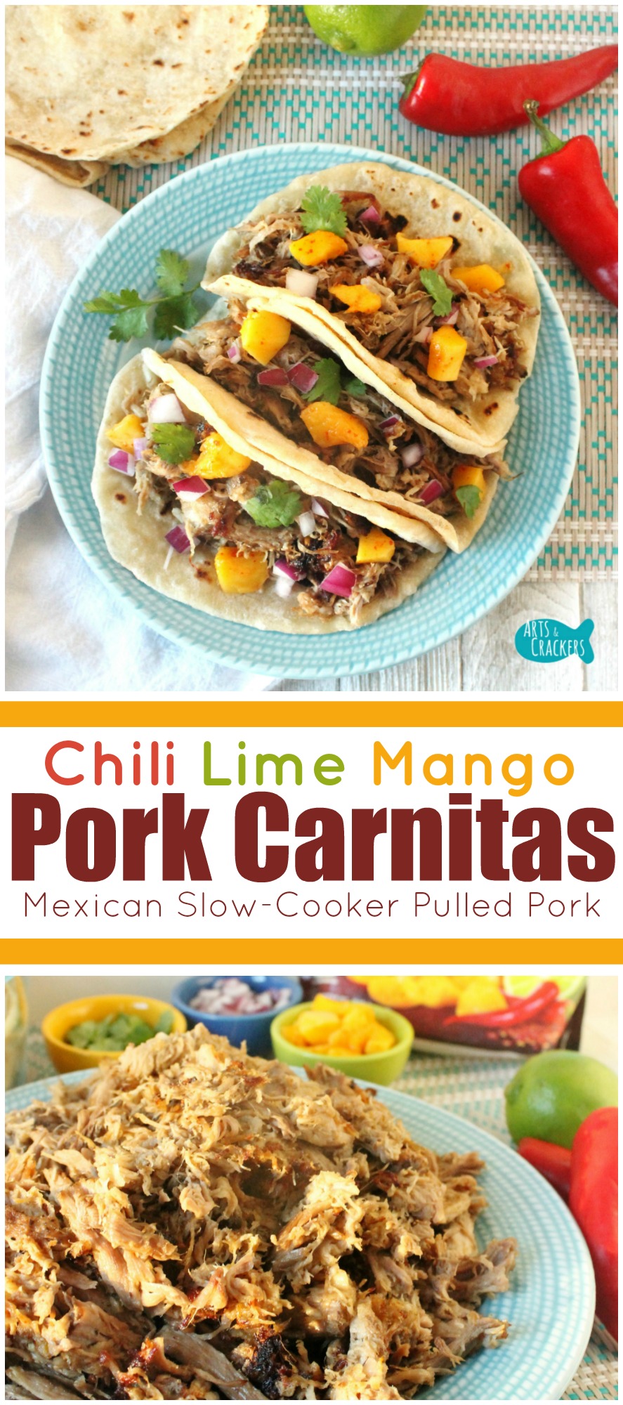 This Chili Lime Mango Pork Carnitas is a crispy, tangy slow cooker pulled pork, a twist on the classic Mexican dish.