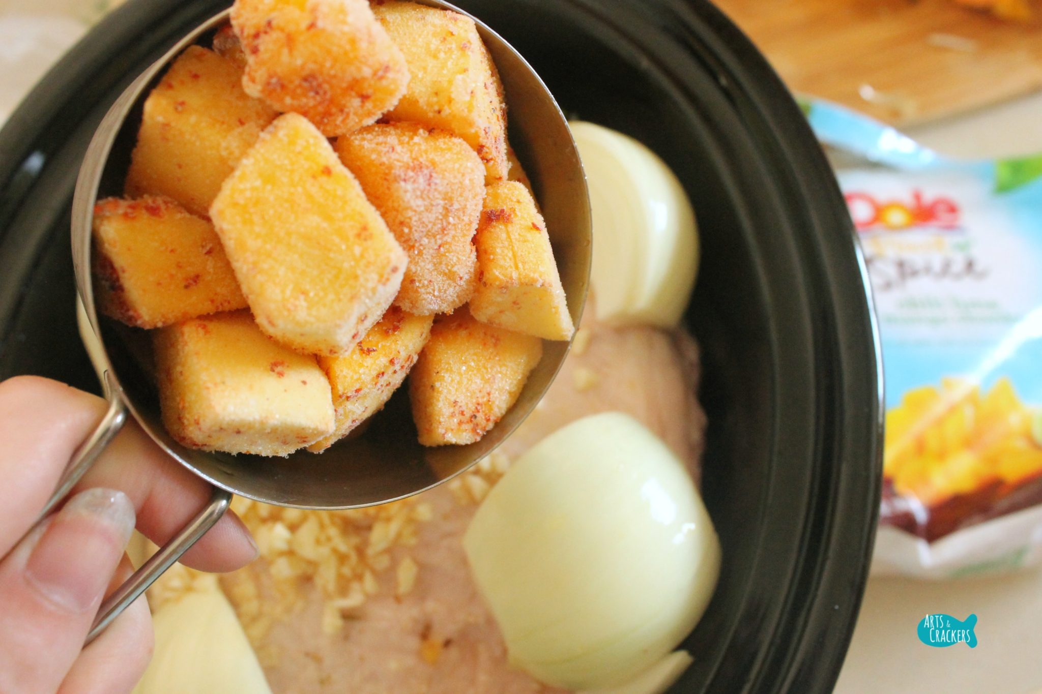 - Add in the mango, orange juice, jalapeno, garlic, and onion. Cover and cook on low for 8-10 hours.
