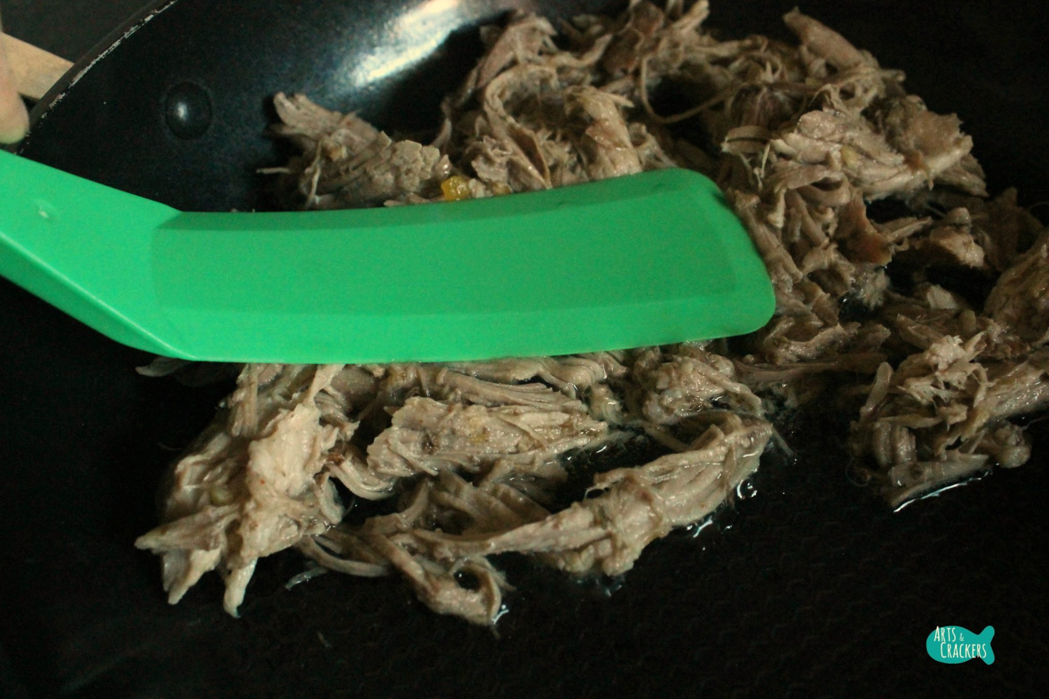 - Using two forks, shred the pork.