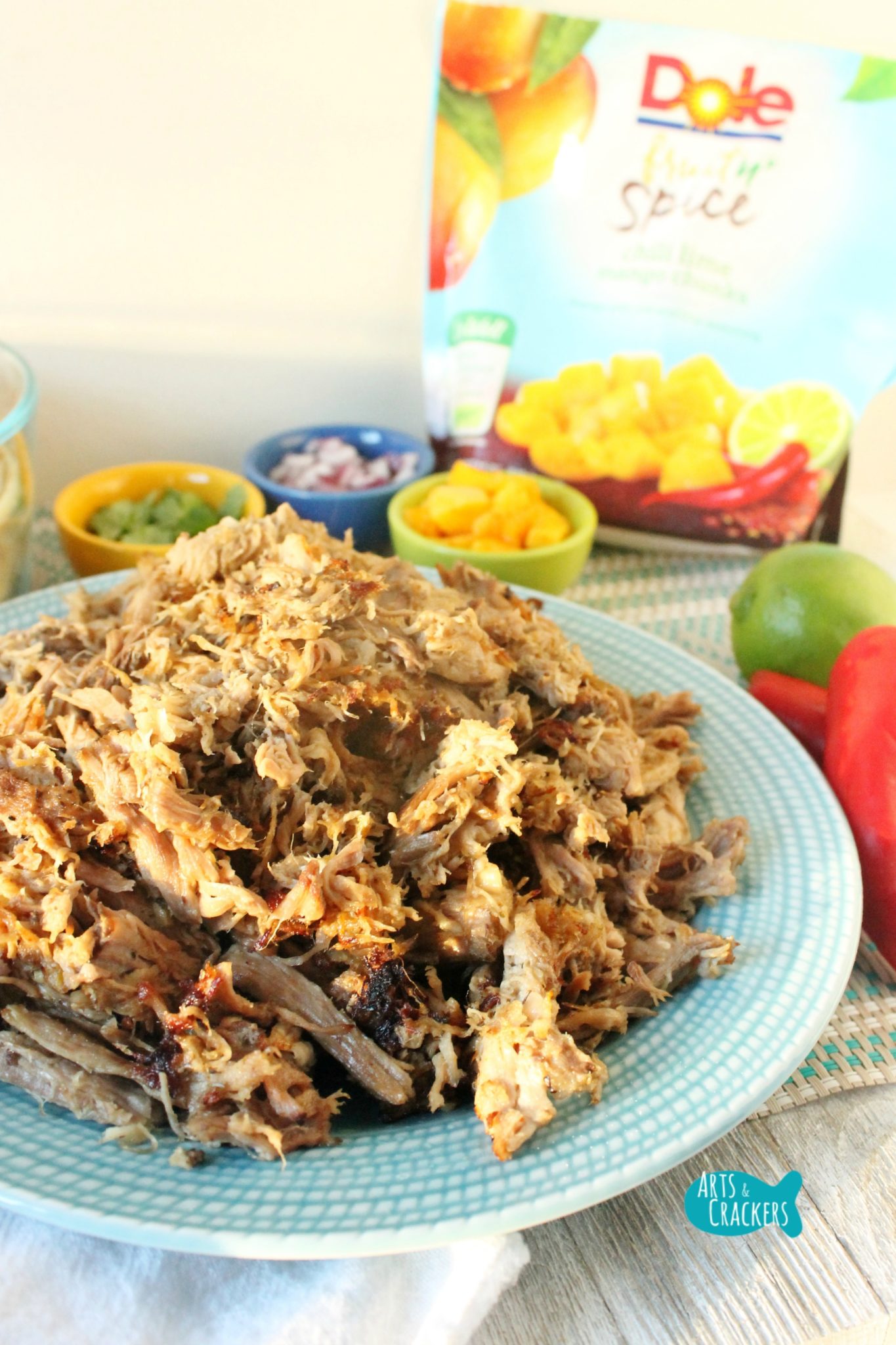 My Chili Lime Mango Pork Carnitas is delicious and has such a refreshing flavor. My husband could not get enough of it! The recipe features DOLE Fruit n’ Spice Chili Lime Mango Chunks, which I will share more about later.