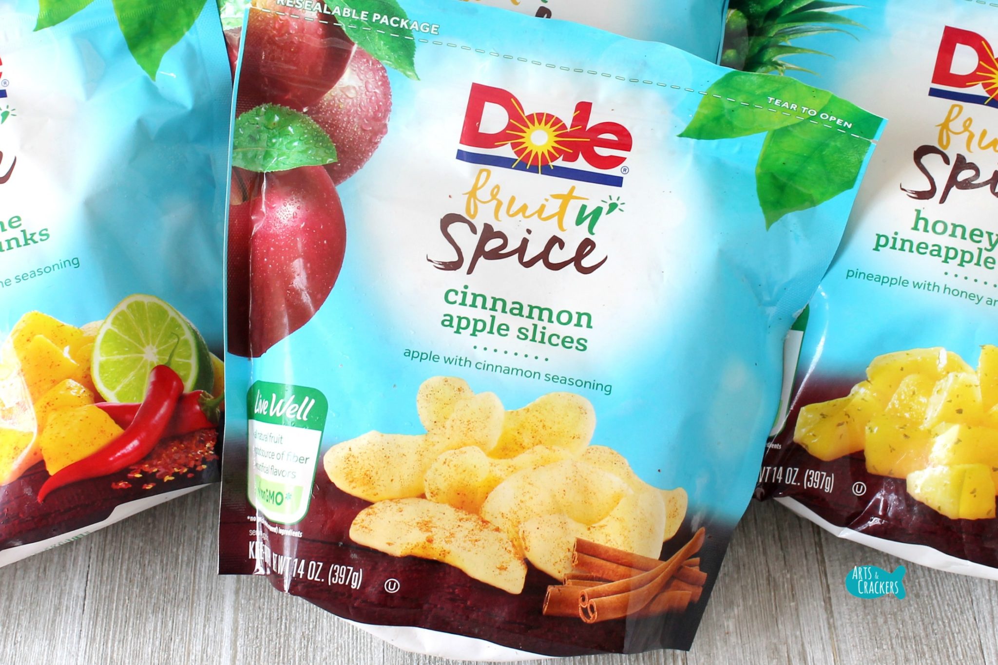 DOLE Fruit n’ Spice comes in three varieties: Chili Lime Mango Chunks, Honey Lime Pineapple Chunks, and Cinnamon Apple Slices. You can find them in the frozen food aisle. Let them thaw slightly before eating them as a snack. You can also send them through a food processor and make them into ice cream!